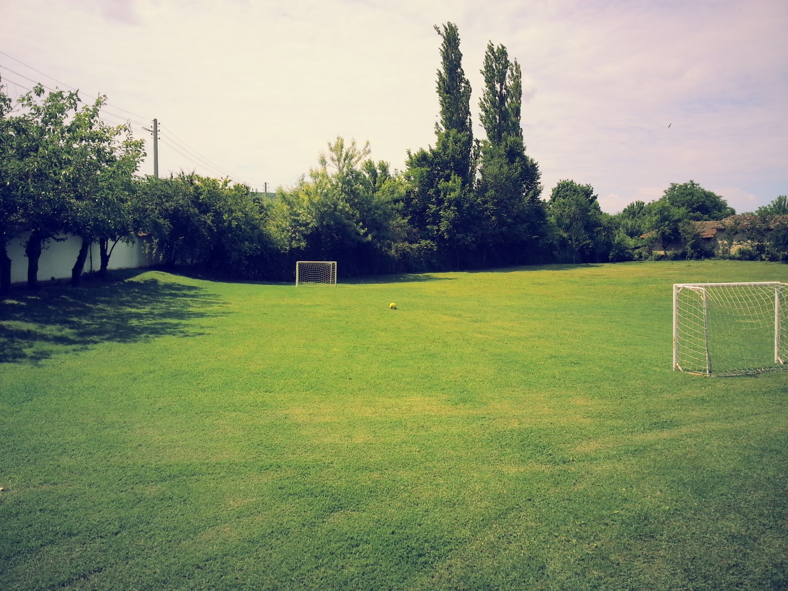 - затревена площ от 3000 кв.м., включваща футболно и волейболно игрище, люлка, беседка- за 6 човека;