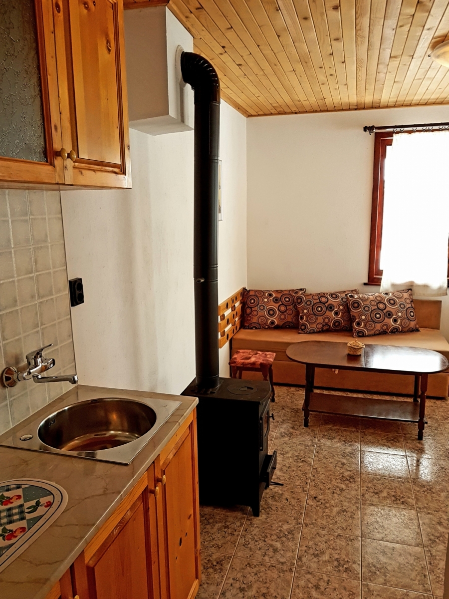 - 3 малки къщи (кухня, спалня с 2 легла, дневна с диван и санитарен възел);